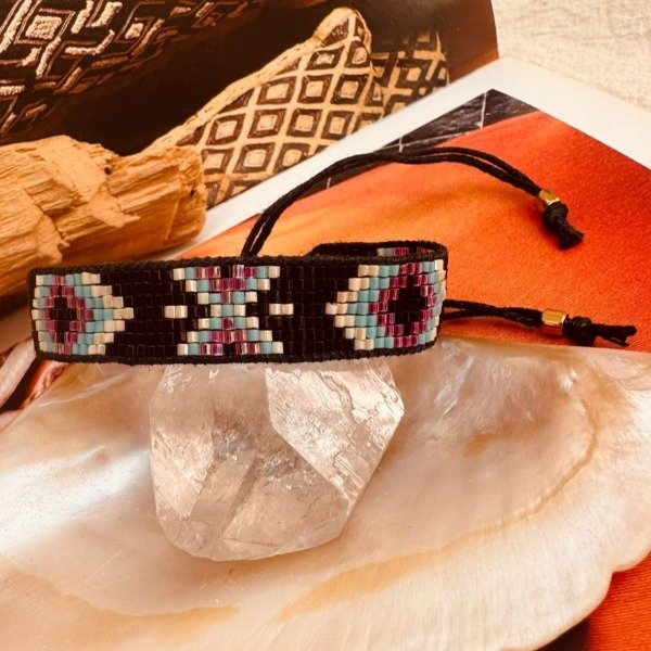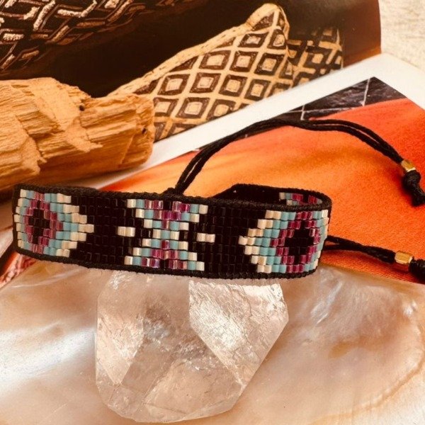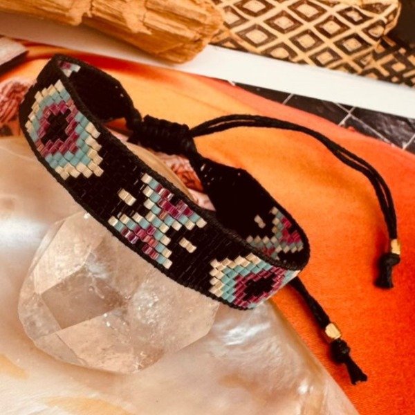 Hecha a mano en la India, esta pulsera está elaborada con la técnica Miyuki en su versión más amplia y detallada.