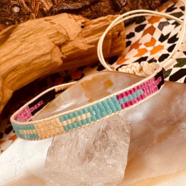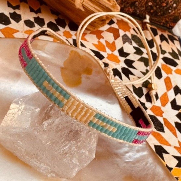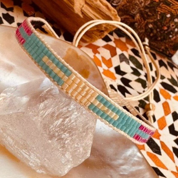 Hechas a mano en la India, estas pulseras están confeccionadas con la técnica Miyuki, una forma de tejido minucioso que requiere precisión, paciencia y un pulso casi meditativo.