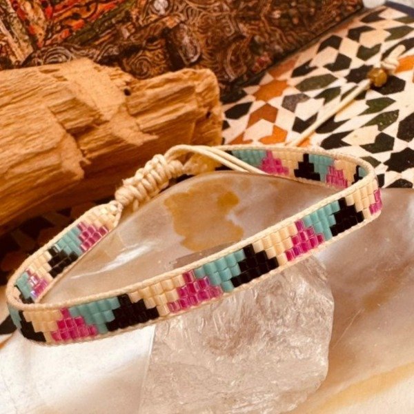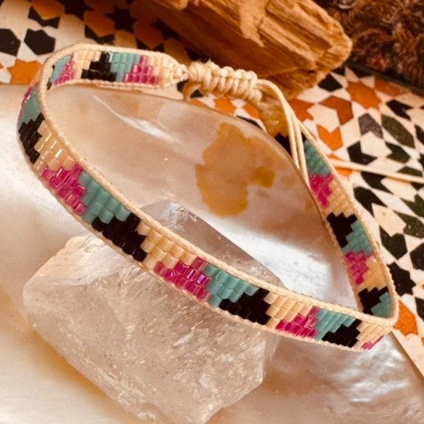 Hechas a mano en la India, estas pulseras están confeccionadas con la técnica Miyuki, una forma de tejido minucioso que requiere precisión, paciencia y un pulso casi meditativo.