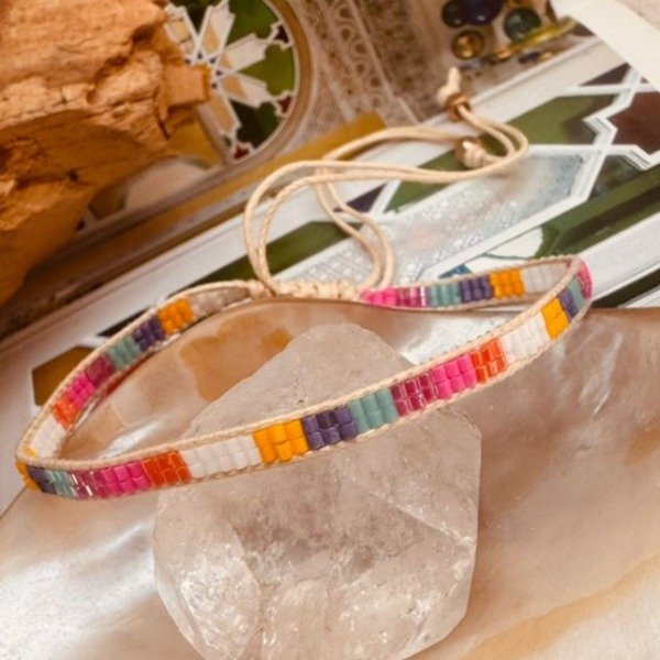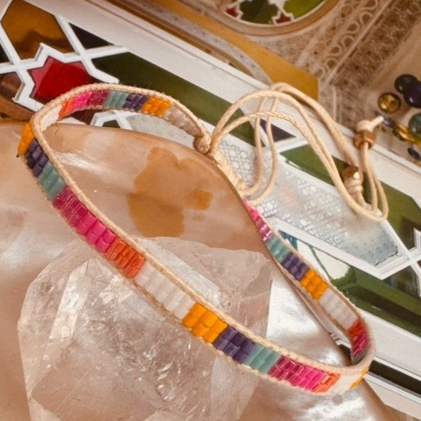 Hechas a mano en la India, estas pulseras están elaboradas con la delicada técnica Miyuki, conocida por su precisión y la suavidad con la que cada cuenta encaja en su diseño.