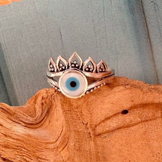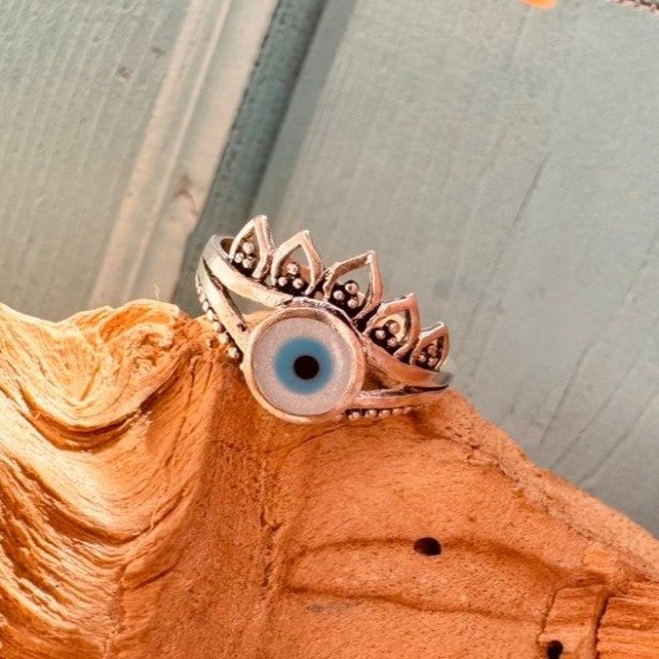 Anillo de plata 925 con ojo protector y centro de nácar.