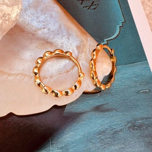 Sus formas redondeadas crean un efecto de pequeñas gotas de luz alrededor del aro, aportando un detalle delicado sin perder la simpleza.