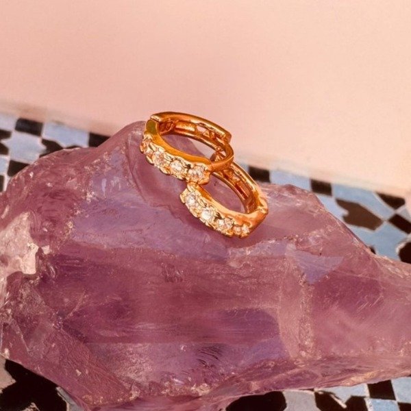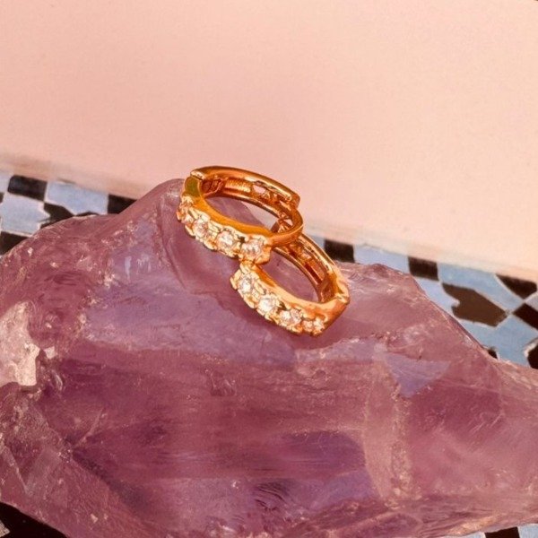 Aros de acero con detalle de pequeñas zirconias que reflejan la luz de manera delicada.