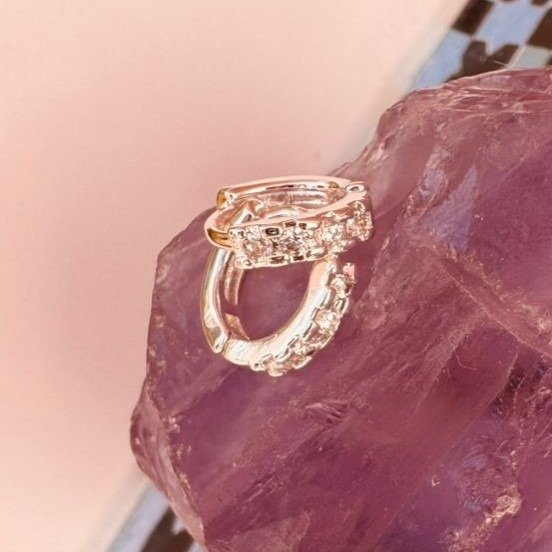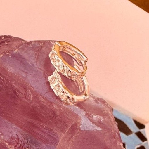 Aros de acero blanco con circonias incrustadas en todo el frente.