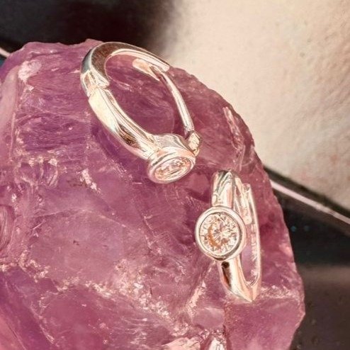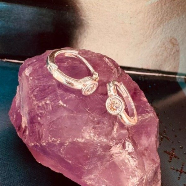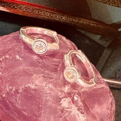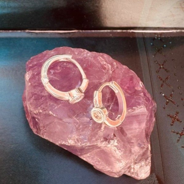Aros de acero blanco con circonia redonda.