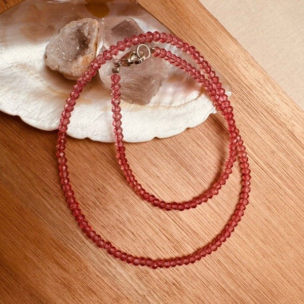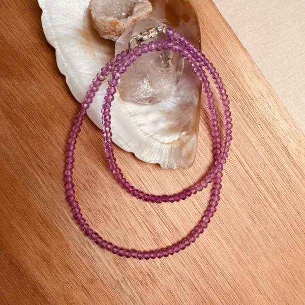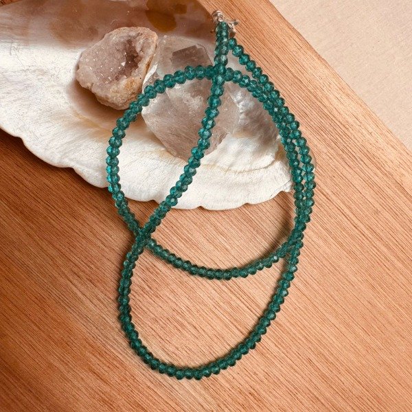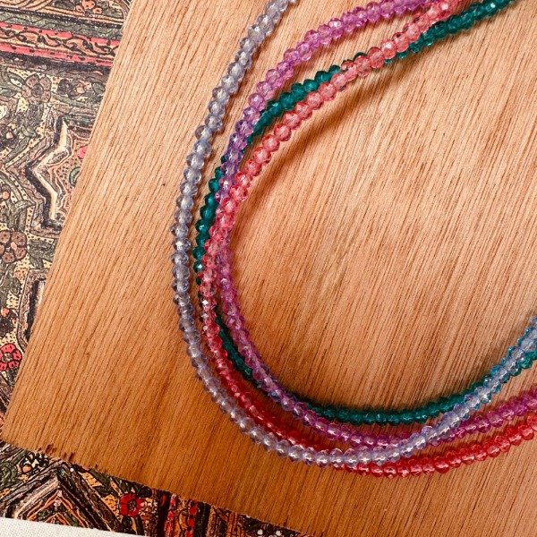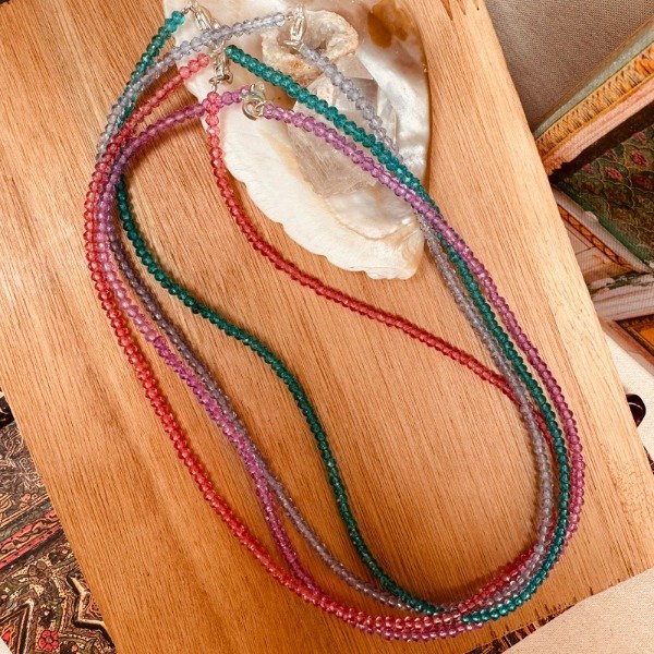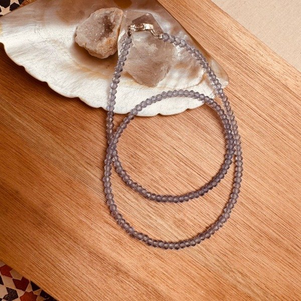 Collar de cristales facetados en forma de dona, con cierre de acero blanco y un largo de 41 cm.