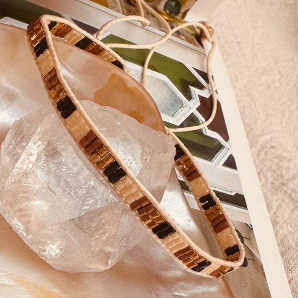 Hechas a mano en la India, estas pulseras están elaboradas con la delicada técnica Miyuki, conocida por su precisión y la suavidad con la que cada cuenta encaja en su diseño.