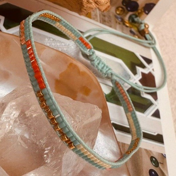 Hechas a mano en la India, estas pulseras están elaboradas con la delicada técnica Miyuki, conocida por su precisión y la suavidad con la que cada cuenta encaja en su diseño.