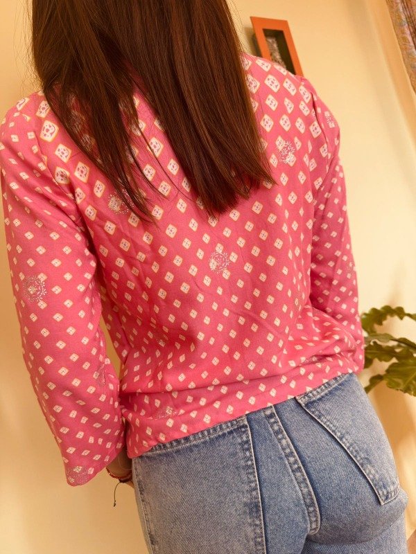 Una blusa cómoda, femenina y artesanal, con el encanto característico de los textiles de la India.