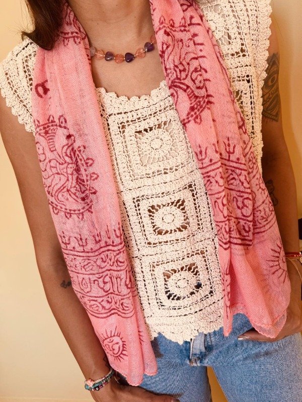Confeccionado a mano, combina suavidad, textura y una estética bohemia que lo hace único.