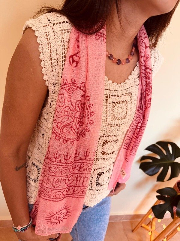Ideal para usar sobre camisas, tops o blusas, y darle un toque natural, luminoso y artesanal al look.