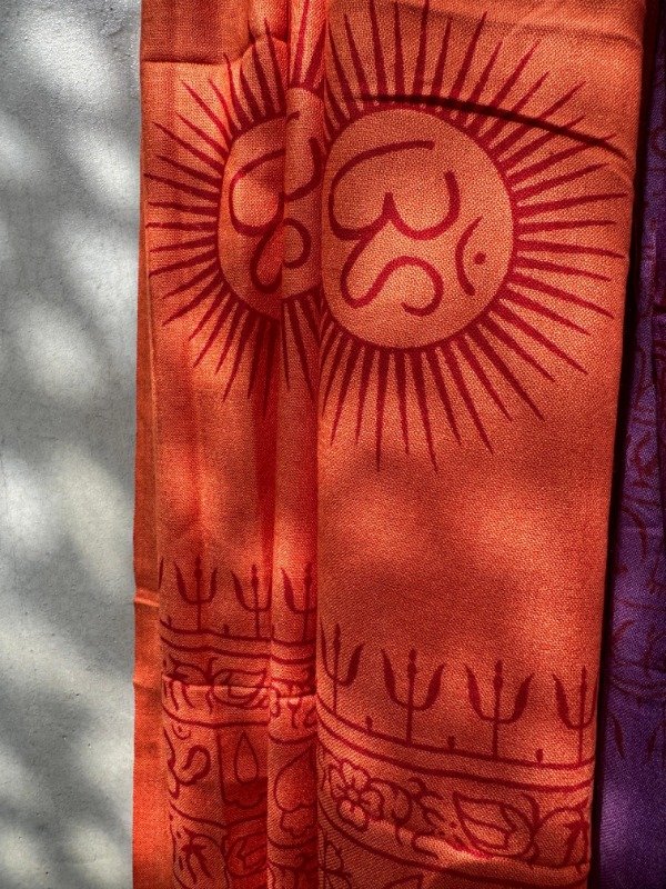 Su textura suave y sus estampas con símbolos sagrados transmiten espiritualidad y energía, convirtiéndolo en mucho más que un simple pañuelo: un puente entre lo ancestral y lo contemporáneo.
