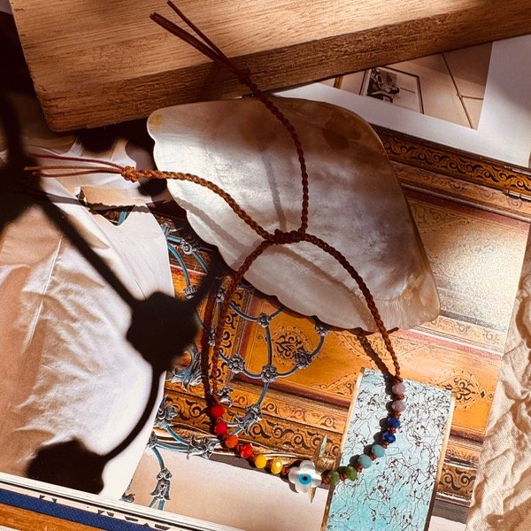 Terminada con un trenzado tierra, que representan conexión, raíz y presencia. Podes regularla.